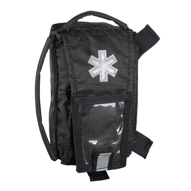 Universal Med Insert's design gælder også det ydre. Frontklappen har et reflekterende håndtag og et paramedicinerkors, som gør kufferten let at finde i svagt lys. Der er også røde syninger på kanterne. Sættet kan også købes med et cover/pose for at skabe et komplet modulært individuelt medicinkit.