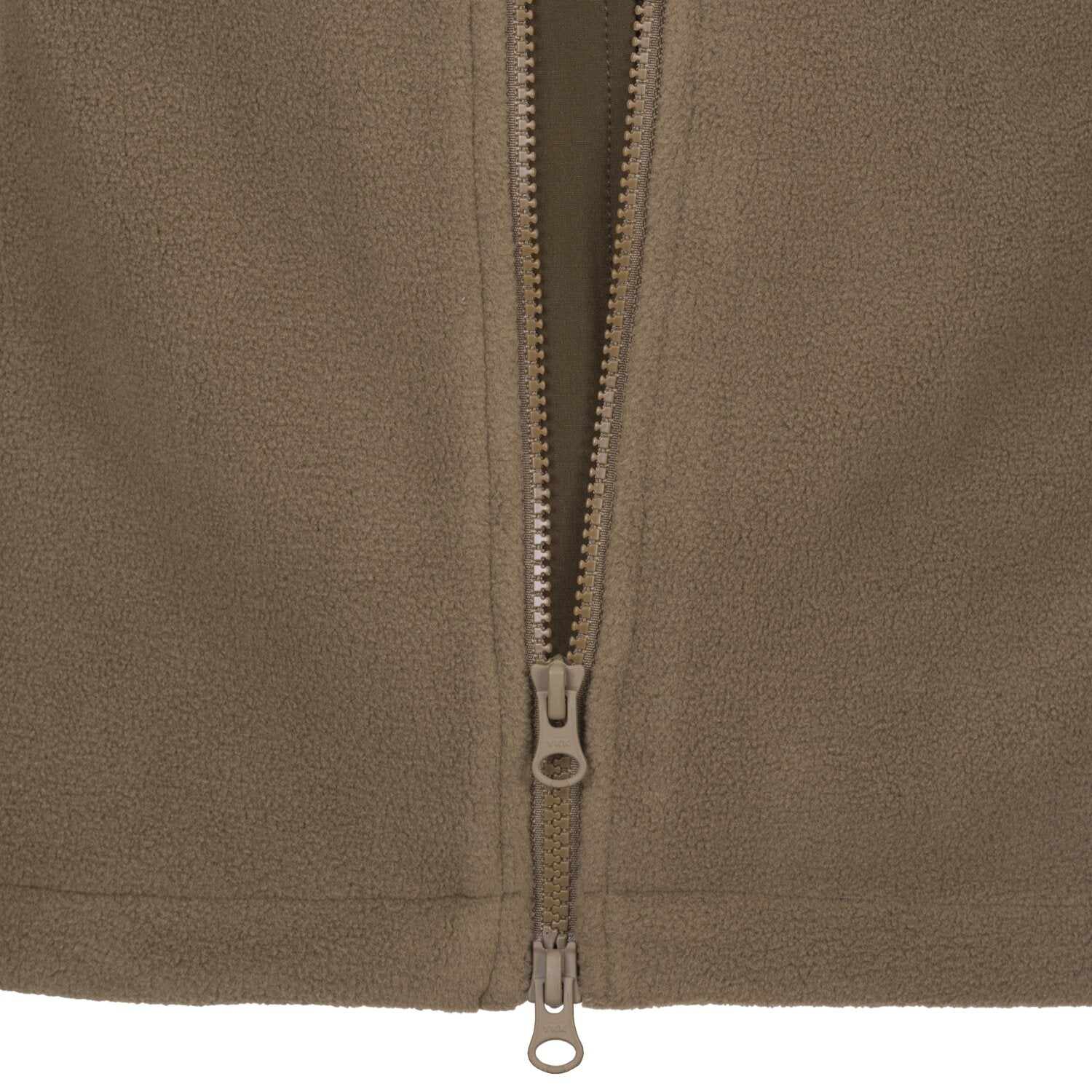 Jakken har en tovejs YKK-lynlås med hagebeskytter, elastiske snore ved håndleddene og forneden for ekstra isolering og nylonforstærkninger på skuldre og albuer for at forbedre holdbarheden på kritiske områder.