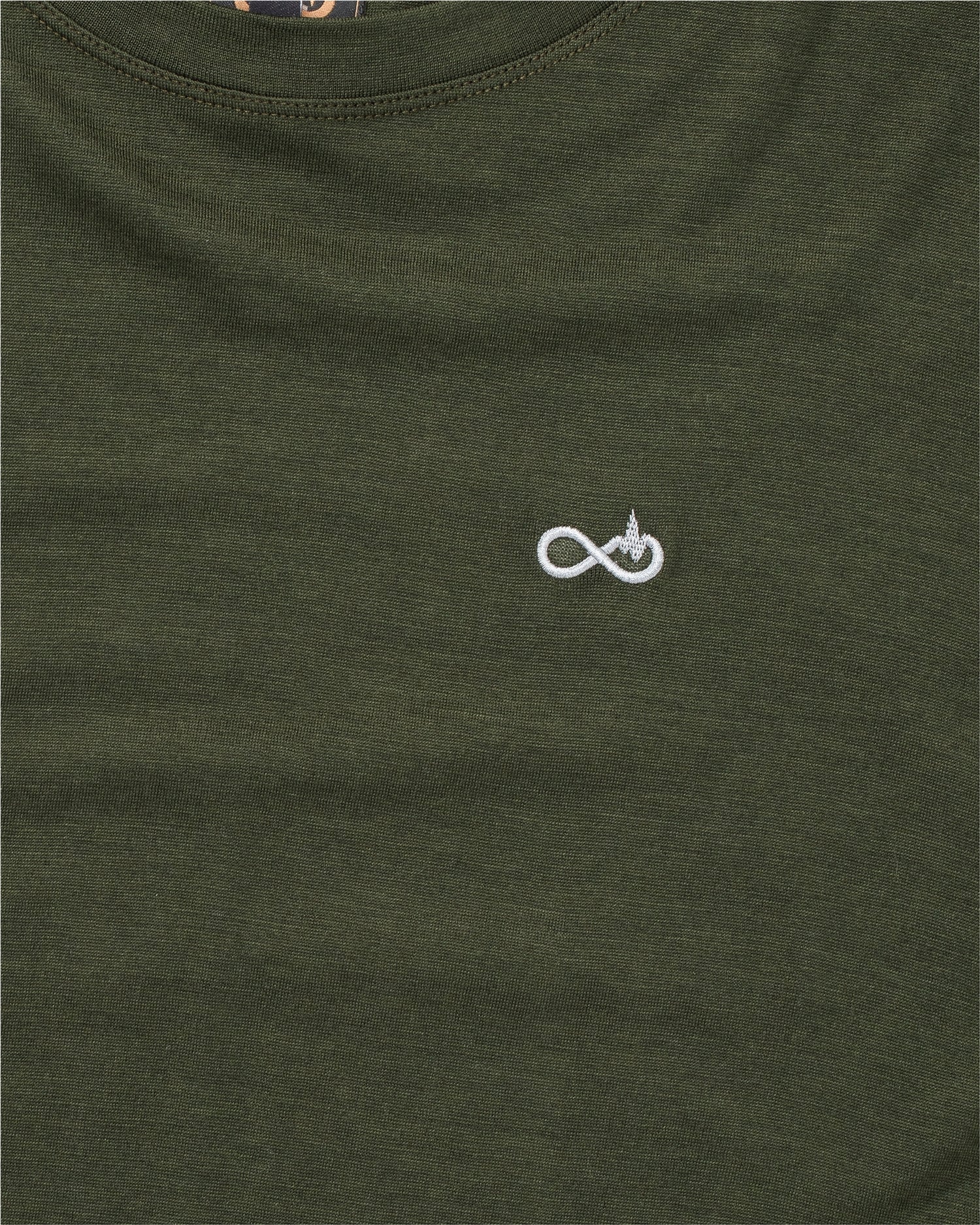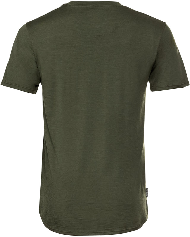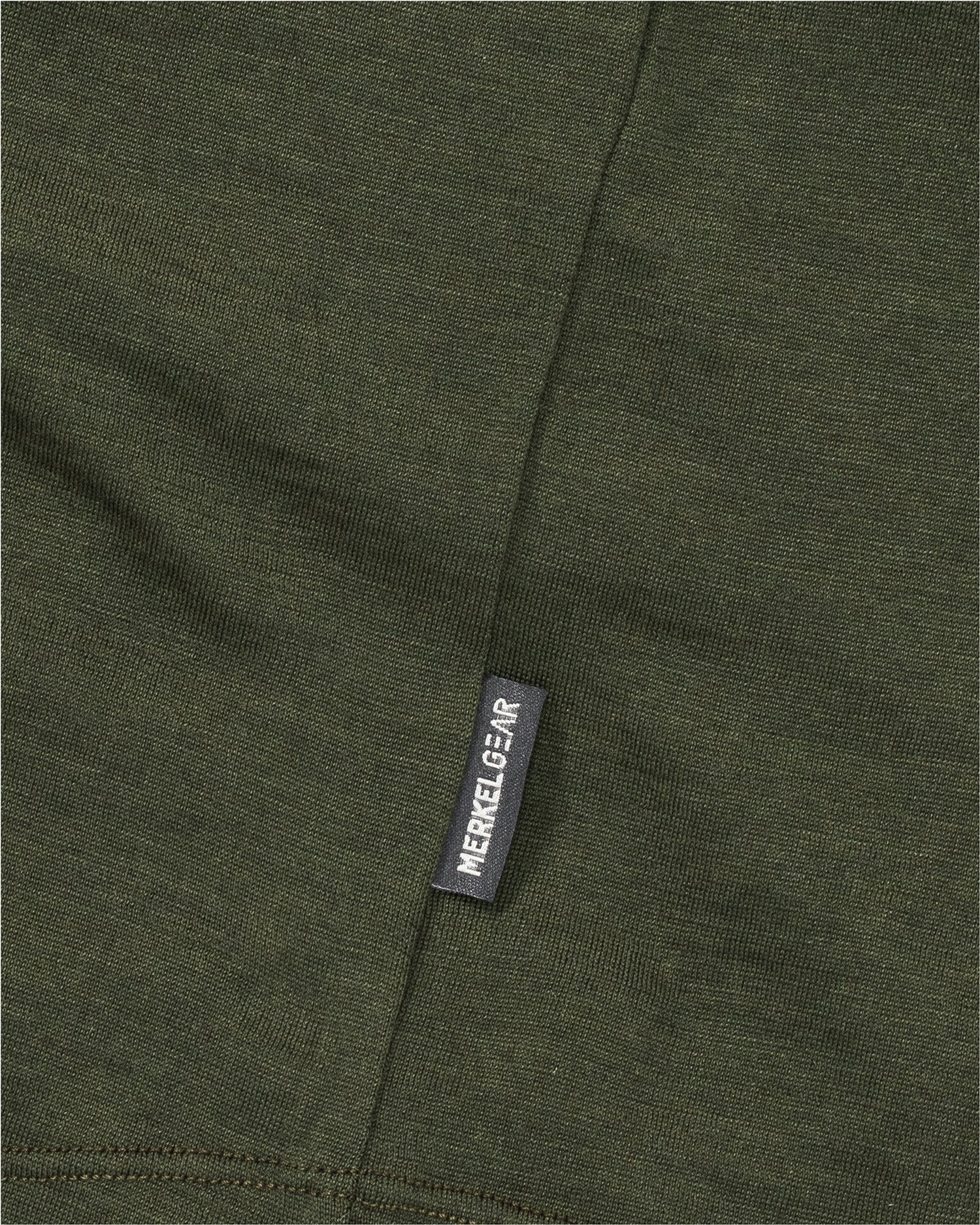 Merino T-shirt 155 fra MERKEL GEAR er fremstillet af 100 % ultrafint, ikke-kradsende, silkeagtigt blødt merinould. Ulden med oprindelsescertifikat stammer fra det smukke Sydafrika og har været anvendt siden 2021. T-shirten kan bæres alene eller som "første lag" (1. beklædningslag) i et flerlagssystem. Gnidningsmærker fra rygsæksremme ved ekstrem jagt forhindres ikke kun af den særligt fine uld, men også af den ekstremt kraftige materialetykkelse på 155 g/m² (konkurrenter bruger ofte kun 120 g/m²), som er optimal til jagtformål. T-shirten er forlænget bagpå for at varme nyrerne og forhindre, at der opstår kuldebroer. Ren merinould i udvalgte kvaliteter er det bedste, man kan have på huden: god vandtransport, uld fungerer som energilager, varmer selv i fugtig tilstand og afgiver om nødvendigt energi til kroppen. Uldens eget kreatin forhindrer desuden bakterievækst og undgår dermed lugtudvikling. Selv efter en lang weekend i hytten vil du ikke opleve en gennemtrængende svedlugt – og takket være merinoulden kan vildtet også sværere opfange din lugt. Med alle disse fremragende egenskaber er Merino T-shirt 155 et af de vigtigste elementer i MerkelGEAR-lag-på-lag-systemet. Og det 365 dage om året! For at sikre en lang levetid bør du hverken vaske den for ofte eller for varmt, men hellere lufte den regelmæssigt i frisk luft.