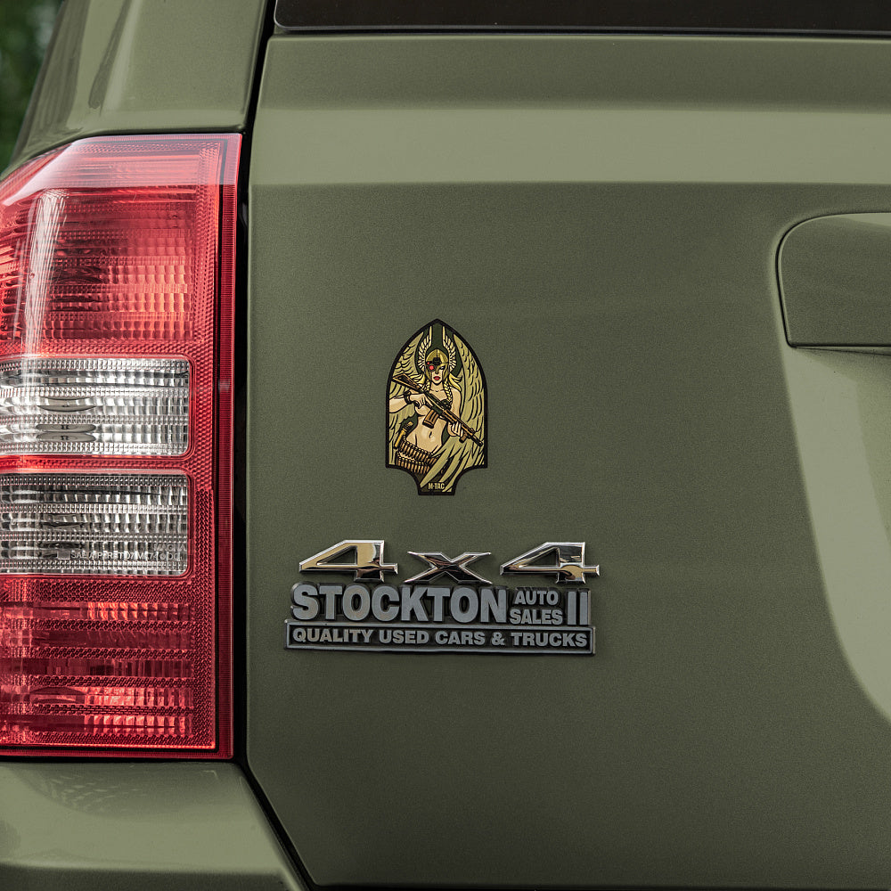 Klistermærket er skabt efter det ikoniske amerikansk-canadiske Arrowhead-emblem, som æres for dets forbindelse til den legendariske First Special Service Force fra Anden Verdenskrig.