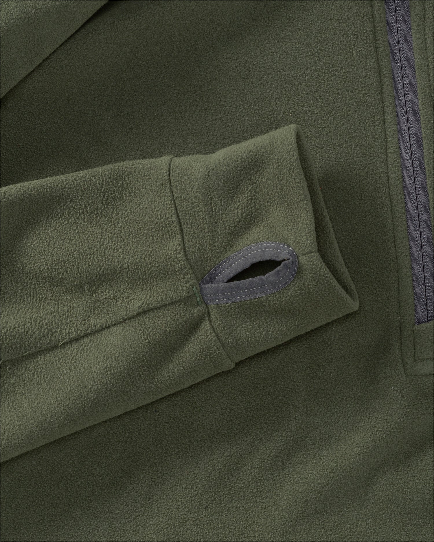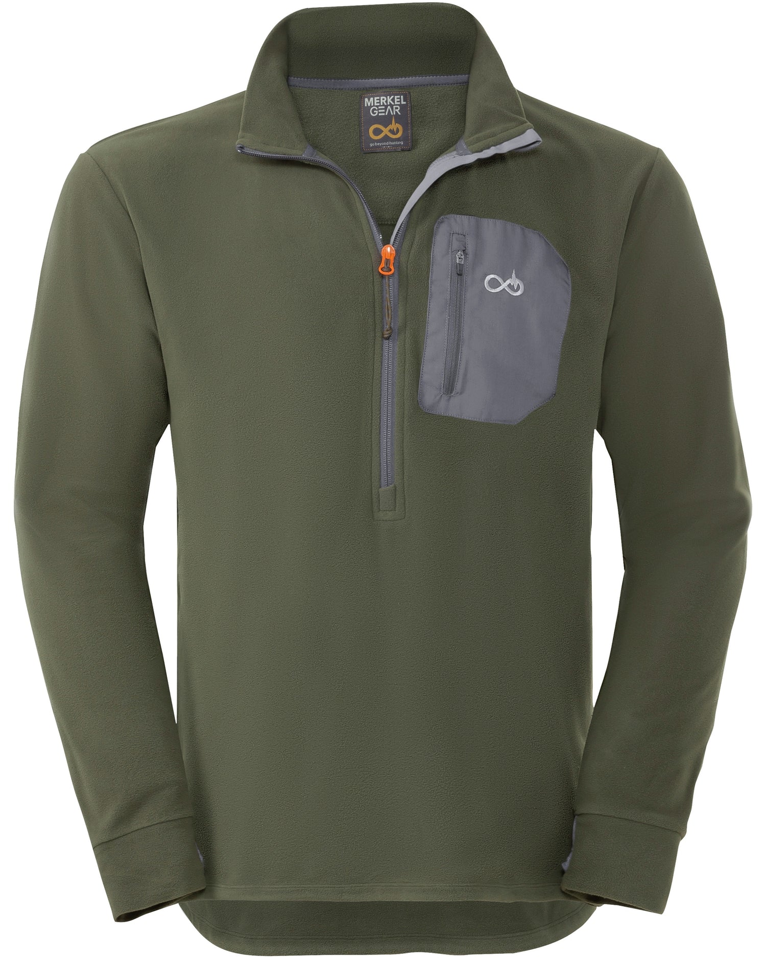 Bush-skjorten er allerede en klassiker i MerkelGEAR's sortiment og har været det siden det første år. Det er ikke så mærkeligt: Den lette fleece-skjorte i fremragende italiensk fleece-kvalitet med lang lynlås i mærket er ekstremt alsidig og kan bruges 365 dage om året og i alle tænkelige jagtsituationer! Nu er Bushshirt blevet revideret og perfektioneret endnu en gang. Overstoffet består af en højdensitets, tværstrækkelig 150 g/m² fleece fra en italiensk mærkevarevæver. Stoffet er desuden udstyret med Polygiene®, som reducerer bakterievækst og dermed lugt. Resultatet: Bush-skjorten behøver ikke vaskes så ofte, og du føler dig mere komfortabel i længere tid – en velsignelse på lange jagtture og godt for miljøet. Den 40 cm lange lynlås fra YKK® gør det nemt at trække skjorten over hovedet og hjælper med effektiv ventilation i midten af kroppen. Takket være den tætsiddende, ikke for høje krave og den figurbetonede, men afslappede pasform er denne lette mellemlag perfekt i et lag-på-lag-system og erstatter den bedste sweater. En lodret lynlåslomme på brystet giver plads til småting. Ærmerne er perfekt skåret og ender i robuste fleece-manchetter med tommelfingerhuller, der gør det nemt at tage trøjen af og på. Bush-trøjen er markant længere bagpå. Bush-trøjen er fremstillet med Polygiene®-udstyr i Portugal, Europa.