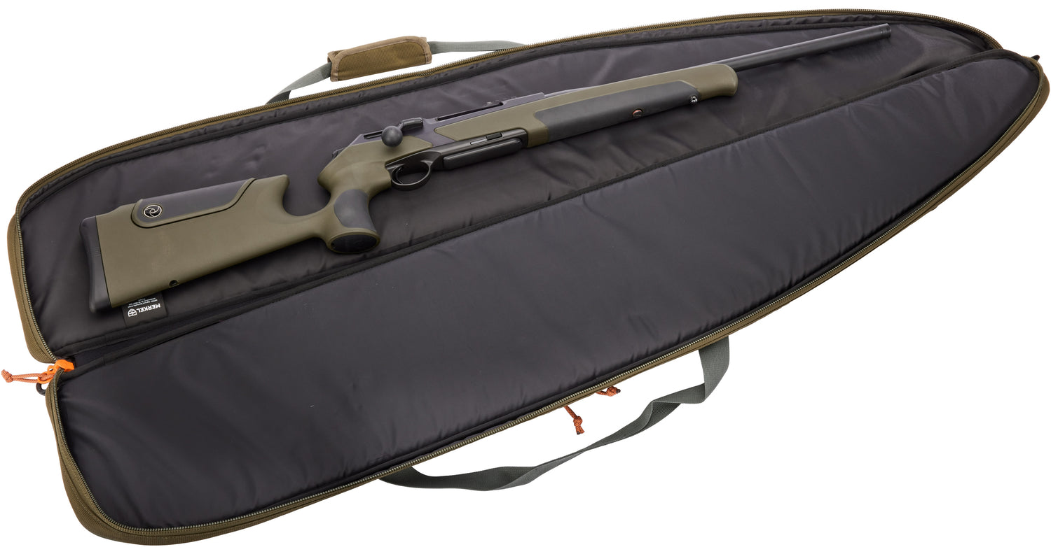 Rifletui Cordura® PRO fra Merkel GEAR imponerer især med tre egenskaber: høj forarbejdningskvalitet, robuste materialer og garanteret lang levetid. I centrum for udviklingen stod et etui, hvor håndtag og remme ikke går i stykker på det forkerte tidspunkt, hvor lynlåse ikke går i stykker, og som er fremstillet af højkvalitets mærkevarer, der holder, hvad de lover. Ingen kompromiser! Cordura® PRO-hylsteret er fremstillet af to materialer: hele den nederste del består af mørkegrå 500D Cordura®-nylon, mens det øverste materiale er et rivfast nylon-rip-stop i olivenfarve. YKK®-lynlåsen i størrelse 10 kan lukkes med en separat hængelås, der skal købes separat. Etuiet har en særligt behagelig, højkvalitets bærehåndtag og to håndtag. Nederst i midten er etuiets inderside forsynet med en slags "hængekøje" af Hypalon, så dyrebare våben kan svæve frit i etuiet og ikke risikerer at slå mod bunden. Tre udvendige lommer giver plads til ammunitionspakker, småting og en stor lyddæmper. Et logo-patch af kvalitets loop-velcro kan fastgøres med velcro-patches og dermed tilpasses individuelt. D-ringe, karabinhager og spænder fra Duraflex®' militærserie.