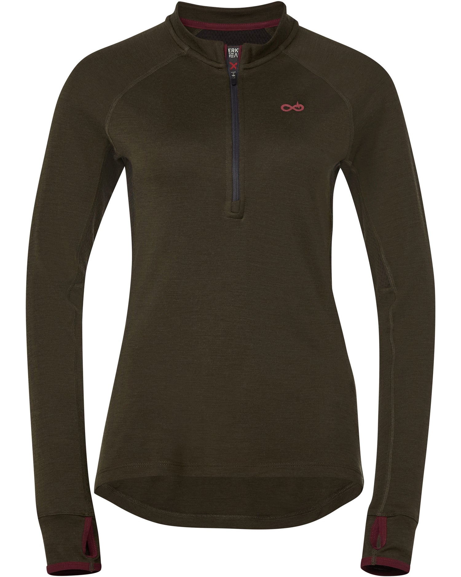 Merino-langærmet shirt til kvinder er blevet fuldstændig redesignet i 2024. Denne Merino-Midalyer er en ægte multitalent og udgør en grundlæggende del af MerkelGEAR-lag-på-lag-systemet fra sæsonens start til de sidste vinterdage. Den kraftige, meget bløde og tæt vævede merinouldblanding – ca. 240 g/m² – giver en fantastisk komfort og uovertruffen isolering. Kombinationen af muelsingfri merinould og et lavt polyesterindhold lover optimal funktion og holdbarhed. Båret alene over en Merino T-shirt er den lange ærme den bedste erstatning for en let jakke i de køligere aftentimer. Som alle dele i kollektionen er den markant forlænget bagtil, så der ikke er mulighed for træk, når man bøjer sig frem. Det særlige ved den nye CREW-shirt er indlæg af merinomes (også ca. 240 g/m²), der sikrer optimal ventilation i armhulen og under armene og dermed holder kroppen i topform i længere tid. Den T-shirt-lignende rund halsudskæring sidder tæt til halsen og forhindrer træk. Den ekstra lange lynlås sikrer effektiv ventilation ned under brystet. Til udstyret hører desuden: bløde tommelfingerhuller i de forformede ærmeafslutninger, som alle er sikret med fine dobbeltsømme. Disse tommelfingerhuller gør det meget nemmere at tage trøjen af og på og sikrer om nødvendigt en god pasform omkring håndleddet. De fremragende egenskaber ved merinould (varmer selv i fugtig tilstand og undertrykker lugtdannelse) overgår selv det mest innovative funktionsundertøj af ren kunstfiber!