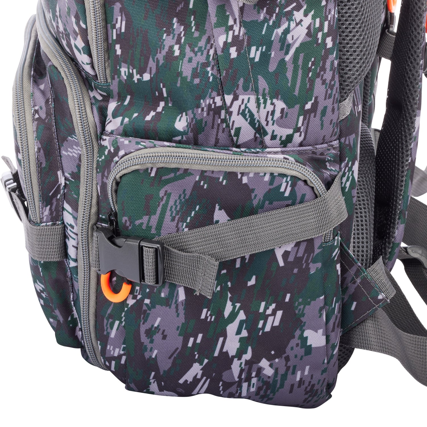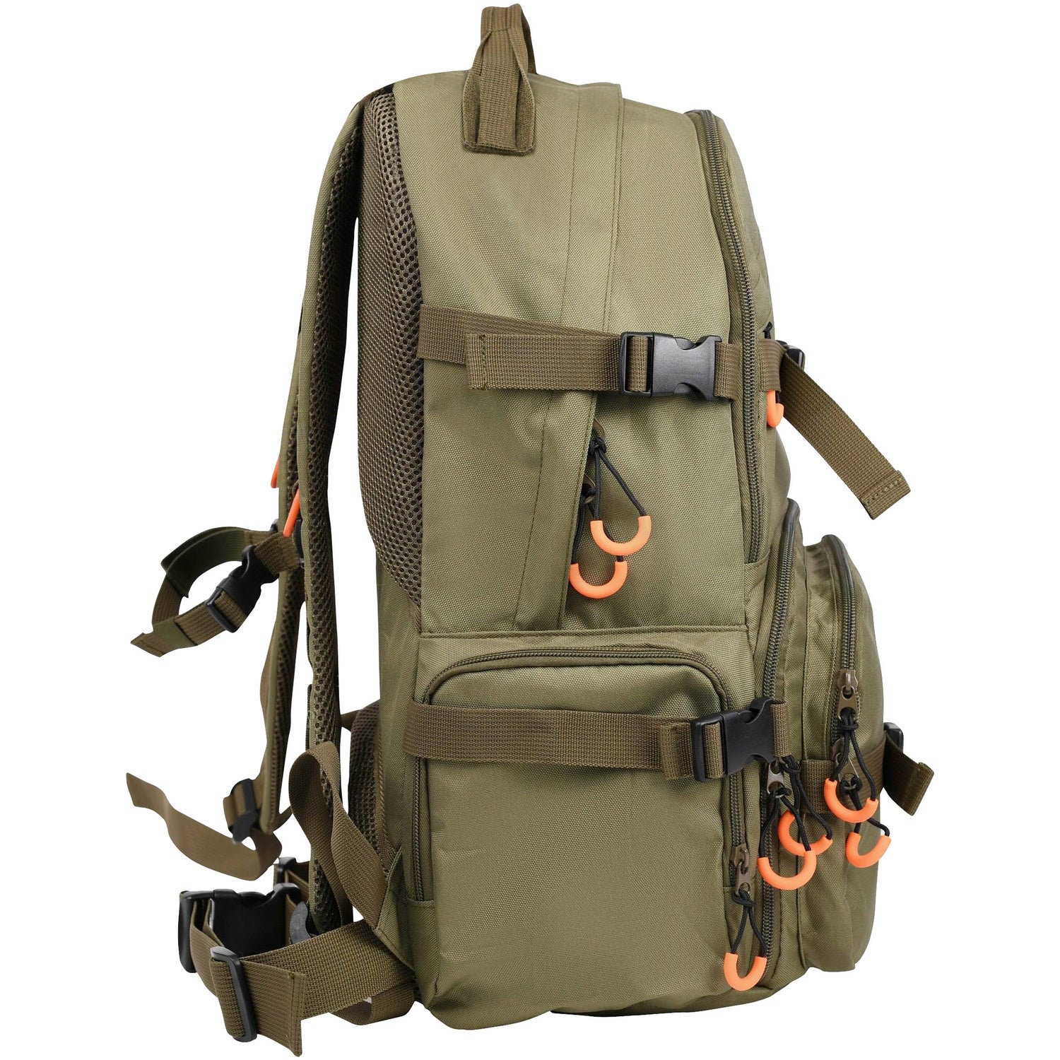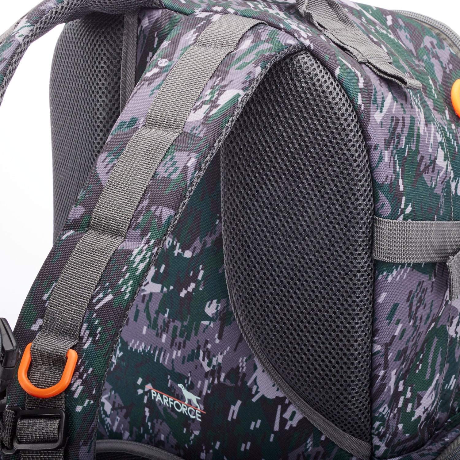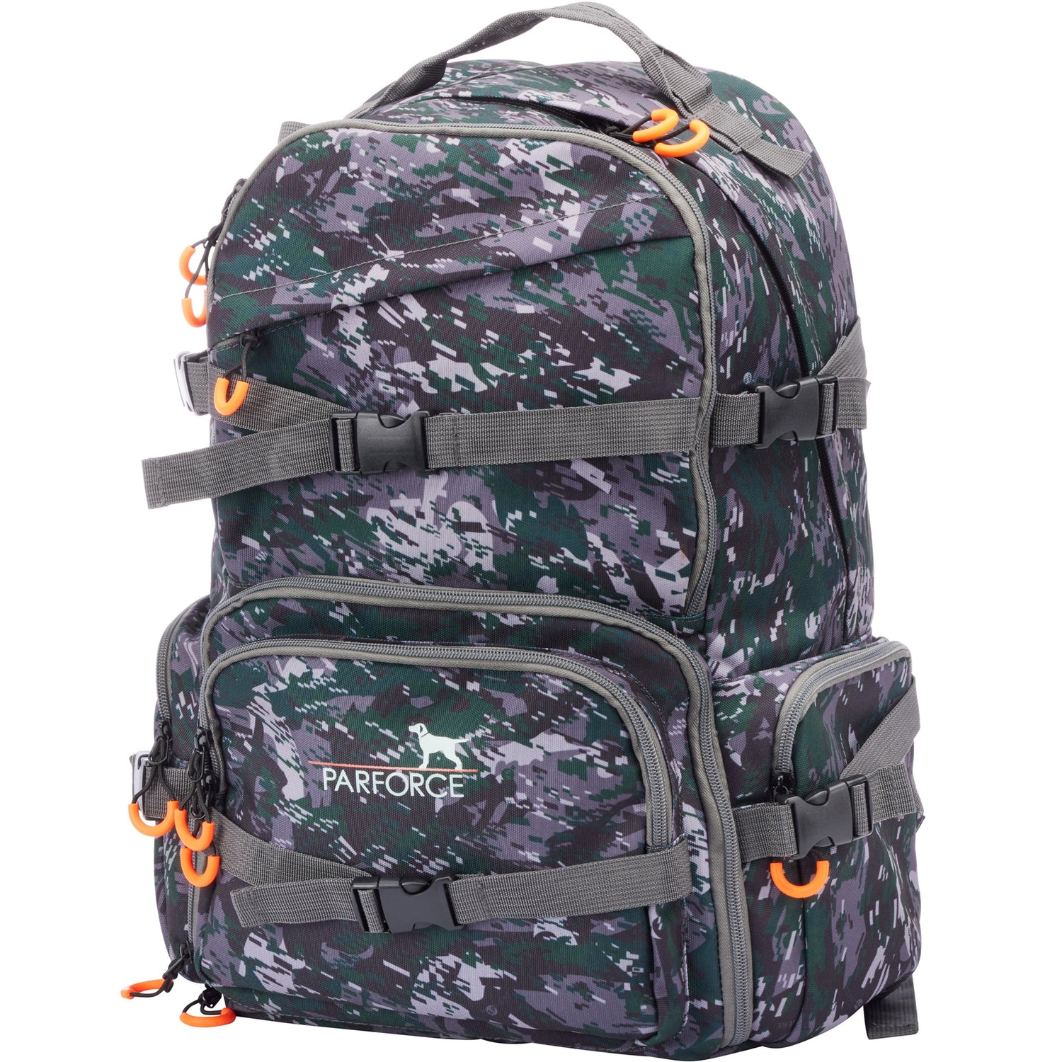 Daypack-jagtrygsækken fra Parforce lader intet tilbage at ønske. Uanset om det er jagt, fiskeri eller vandring - med sit sofistikerede og moderne design giver rygsækken komfort og organisation til enhver brug. Hovedrummet har en lomme til en siddepude eller en bærbar computer. Rygsækken er også udstyret med flere netlommer, der kan lukkes, så du hurtigt og nemt kan få adgang til småting. Den har to lettilgængelige sidelommer og letgenkendelige orange lynlåse. Indsyede løkker hjælper med at organisere knive, hakkelsæt eller andet værktøj. Et af de mange lynlåsrum har et praktisk gennemtræk, som giver hurtig adgang til det indre. Med de ekstra stropper kan beklædningsgenstande som f.eks. jakker nemt fastgøres på ydersiden af rygsækken og er derfor altid lige ved hånden.