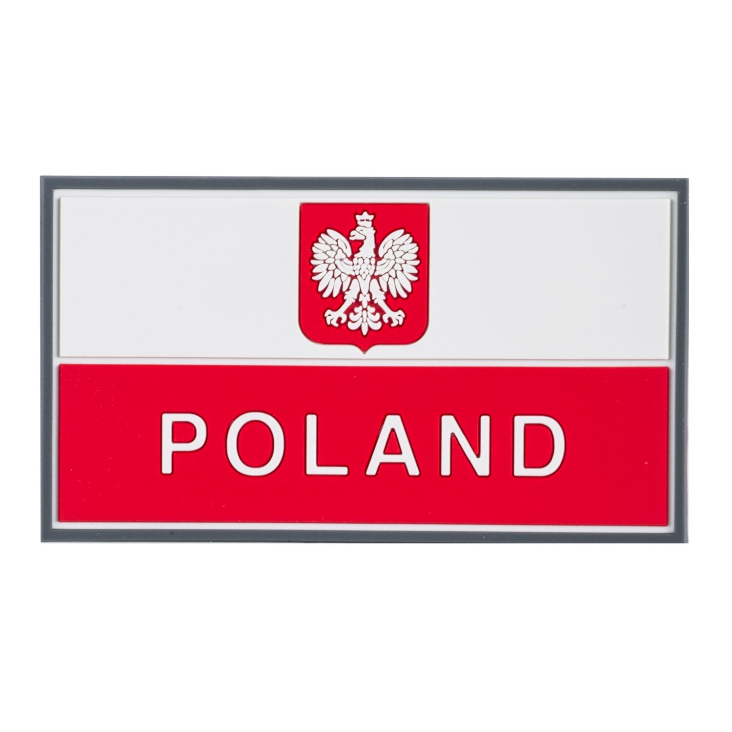 Patch med Polish Banner Patch 90 X 50 mm tema lavet af elastisk, vandtæt 3D-materiale. Det kan nemt fastgøres til kroge og løkker på tøj, rygsække eller tasker, hvilket gør det perfekt til personliggørelse.