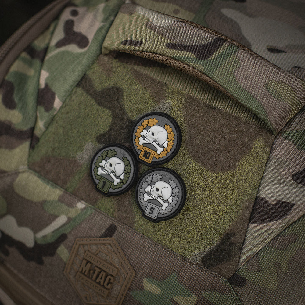 I moderne tider fortsætter denne tradition gennem vores unikke våbenhak patch. Med et design, der kombinerer dødningehovedsymbolet og en laurbærkrans, tilbyder vi dig muligheden for at markere dine egne "achievements" i kampe.