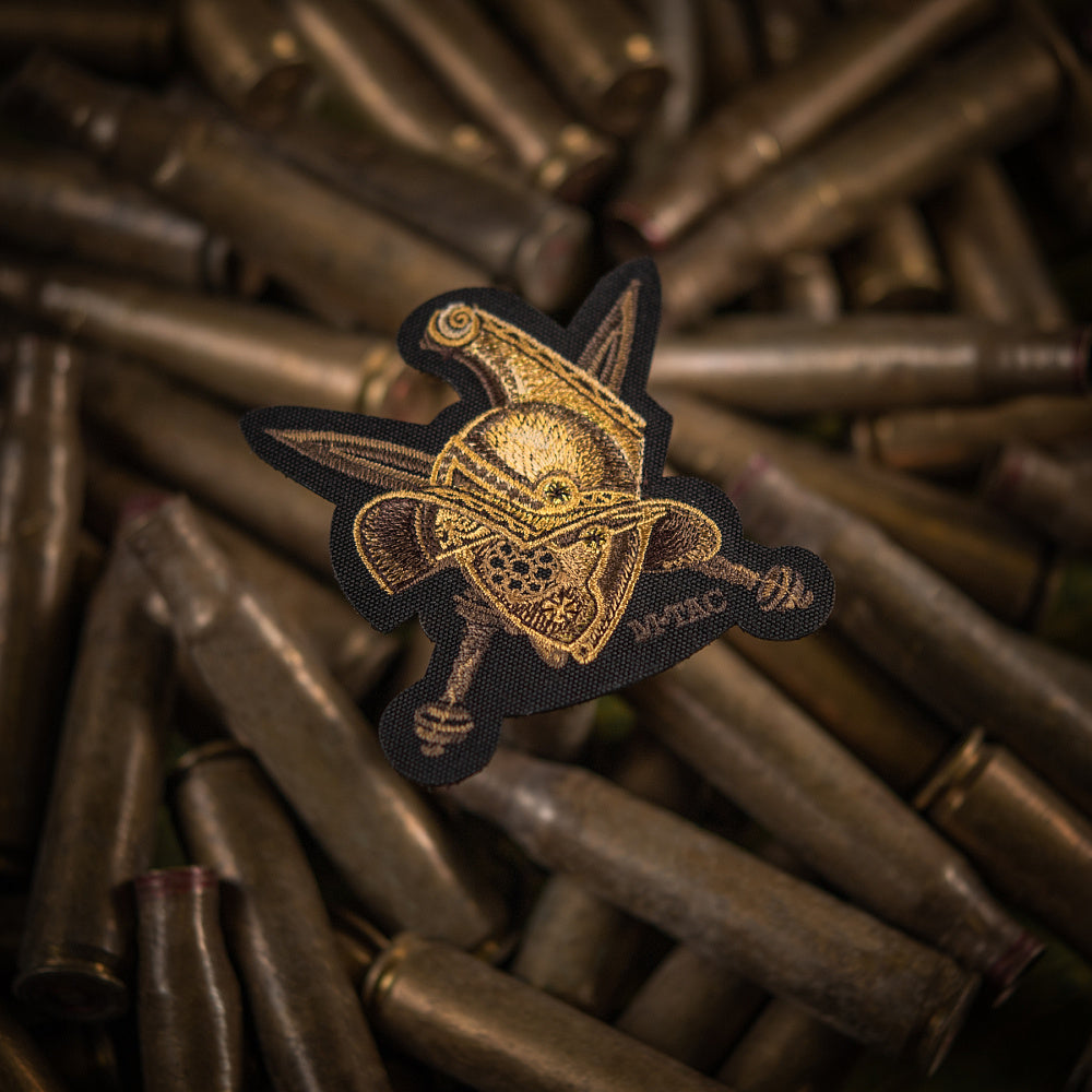 Experience the spirit of ancient Roman gladiators who fought for life and liberty. This patch proudly showcases a mirmillo gladiator's helmet and crossed gladius swords, emblematic of their renowned legacy. Today, it stands as a symbol of the creed "kill or be killed."