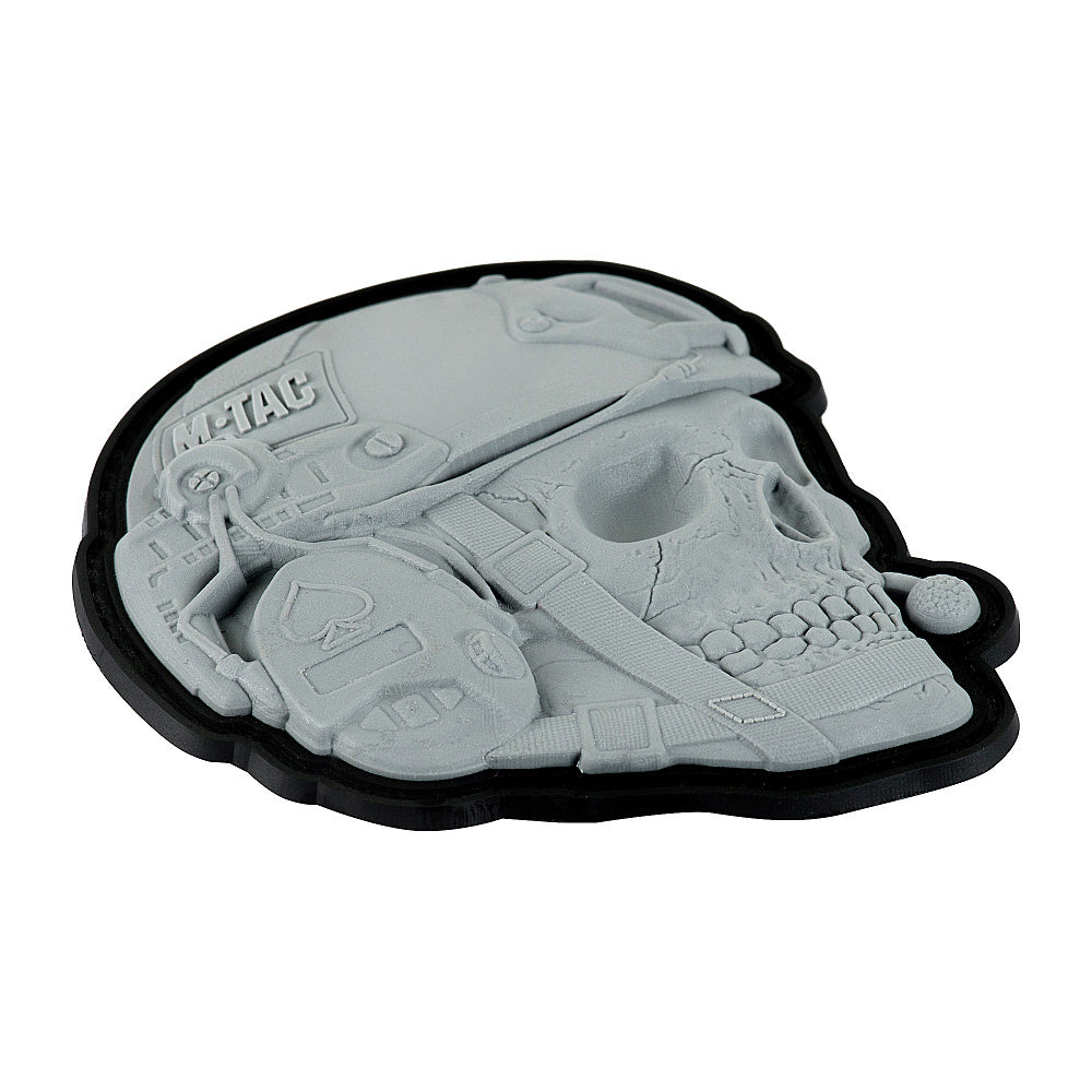 Patchen prydes af et dødningehoved indlejret i militær ammunition, hvilket er et stærkt symbol på grusomhed, ødelæggelse og den uundgåelige død.