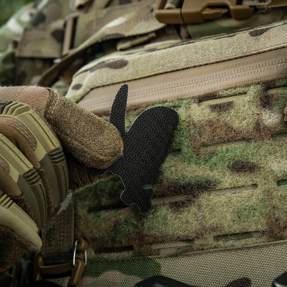 Patchen kan nemt fastgøres på ethvert tøj eller udstyr med velcro.