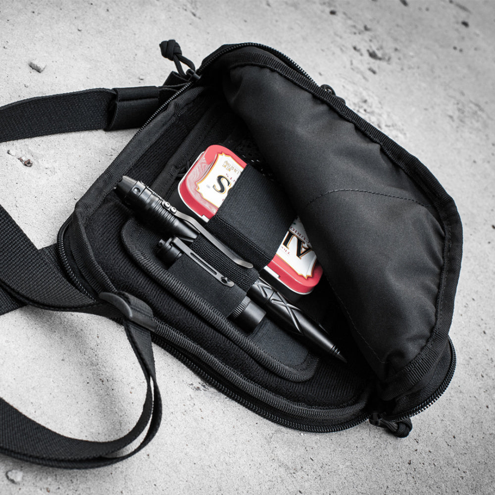 Organisér nemt din hverdagstaske med vores praktiske modulære organizer, som let fastgøres til ethvert velcropanel i din taske eller rygsæk.